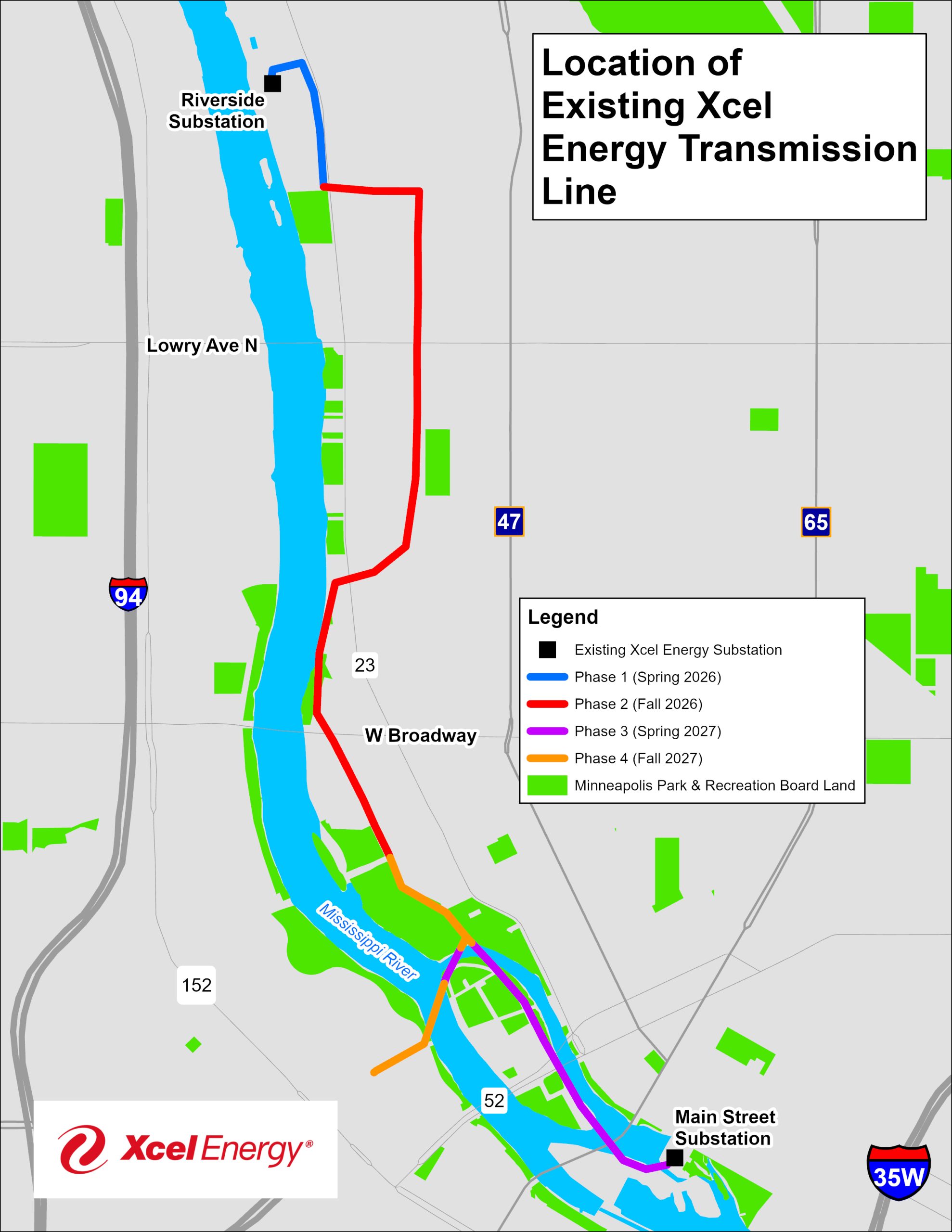 The purpose of the Northeast Minneapolis Update project is to address the aesthetic issues of the structures and replace select structures. Xcel Energy will work closely with local officials, stakeholders, and potentially affected business owners/landowners when construction work may occur, including traffic control when equipment is in the area. Project work must also be coordinated with plant operations and maintenance outages at the Riverside Plant. Most project work will be completed during spring and fall months when regional electric use is lowest.