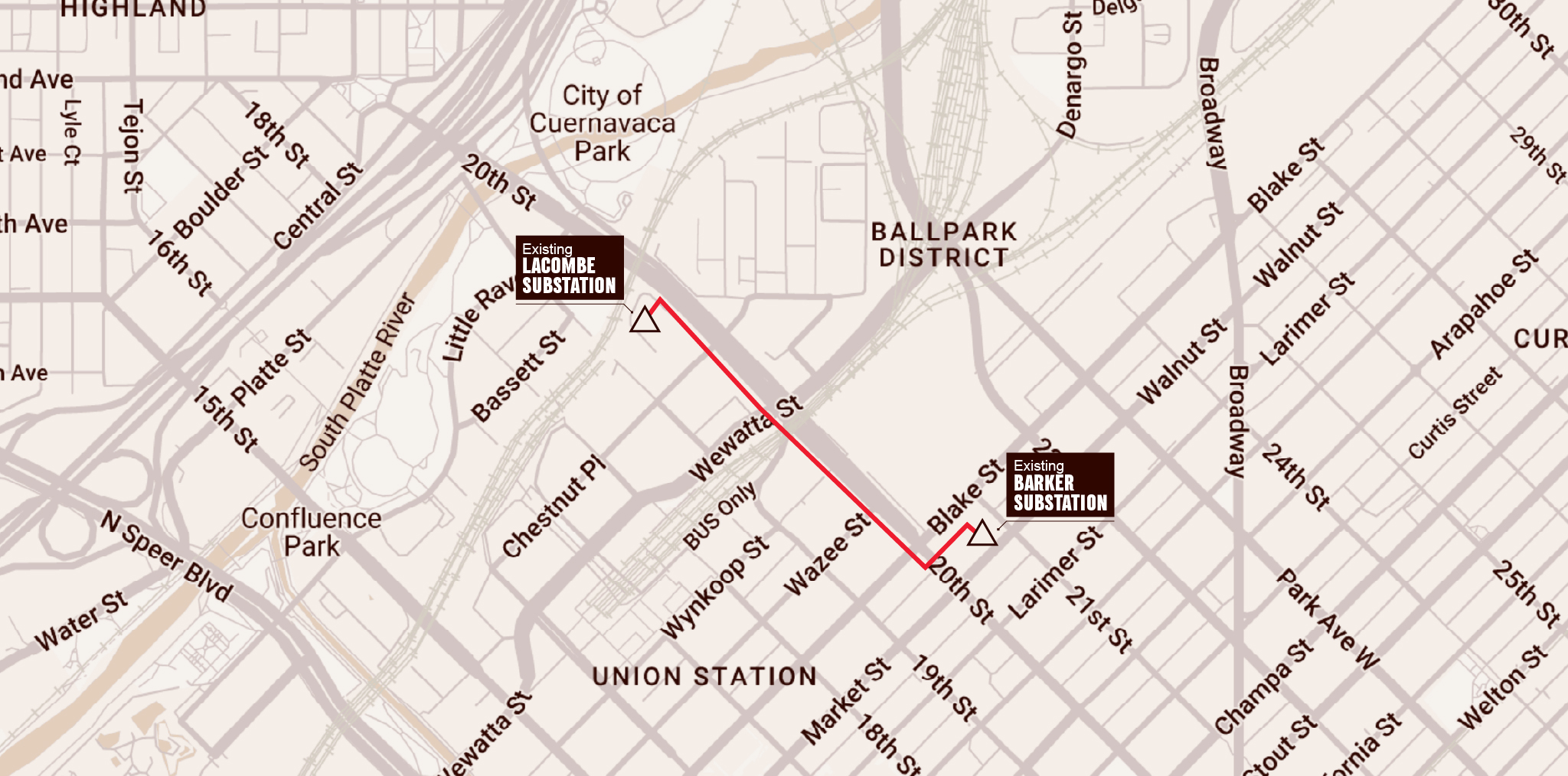 We are installing 230-kilovolt double circuit underground electric transmission lines between the existing Lacombe and Barker substations, installing equipment and energizing the Barker Substation site, and installing underground electric distribution lines to connect to our existing electric system for the Lacombe to Barker Underground Transmission Project (Project) in Denver.